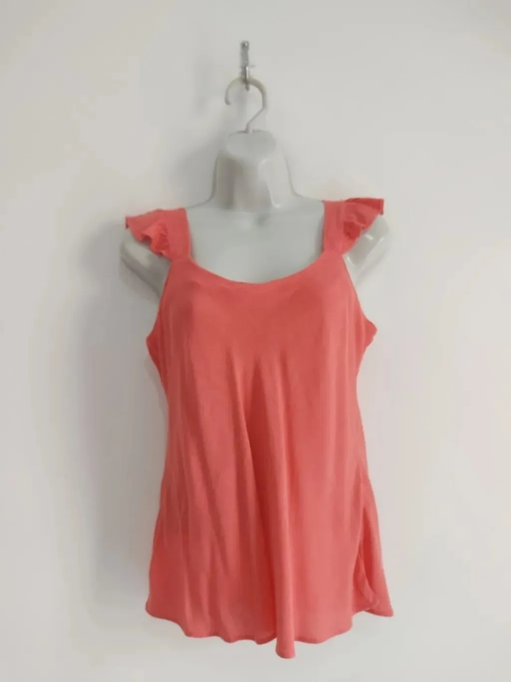 CONFIRA AS MEDIDAS ABAIXO: Possui gola redonda e alça babado. Usada, porém em excelente estado de conservação. Tamanho: M Cor: Coral Tecido: Viscose Marca: Misso Condição da peça: 10/10 Medidas: Busto: 96cm Cintura: 82cm Comprimento: 60cm