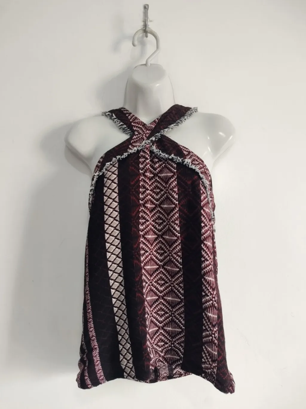 CONFIRA AS MEDIDAS ABAIXO: Possui gola halter neck cruzada com detalhes de franja, fechamento com zíper nas costas e estampa étnica. Usada, porém em excelente estado de conservação. Tamanho: M Tecido: Viscose Marca: Shoulder Condição da peça: 10/10 Medidas: Busto: 96cm Cintura: 96cm Comprimento: 64cm
