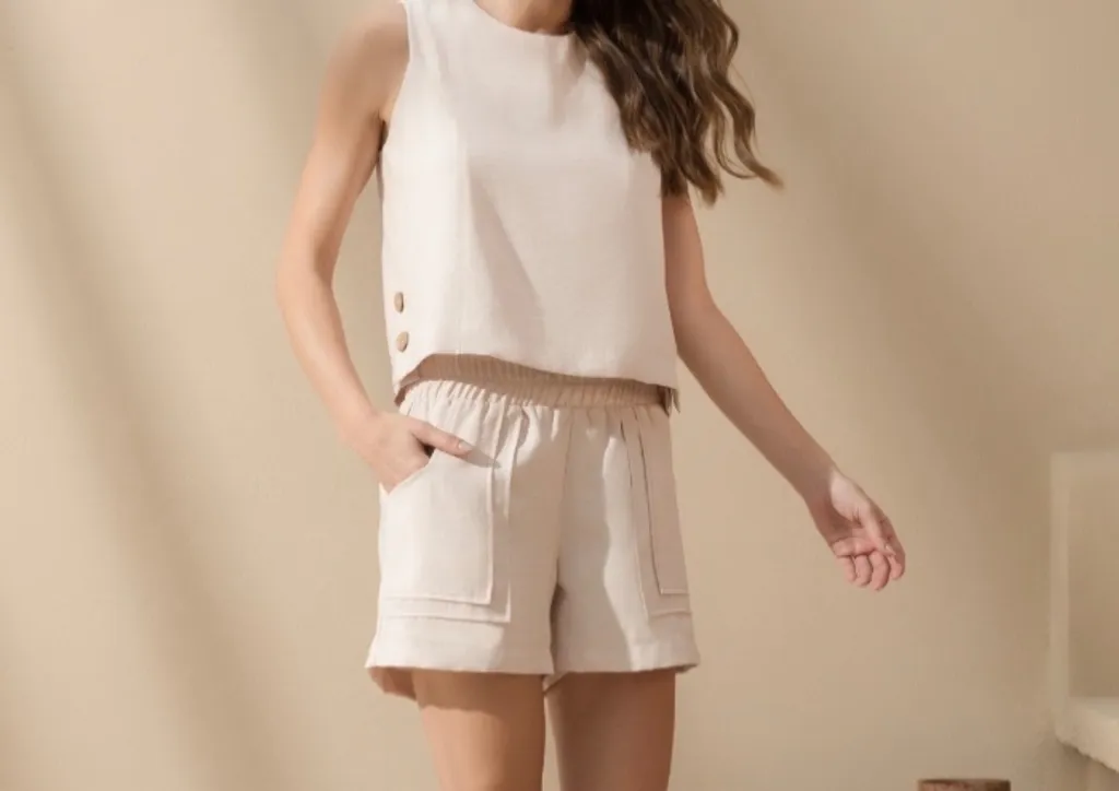 linda regata em alfaiataria da loft style na cor bege clara, com botão atrás e botões nas laterais como enfeite. a peça não possui forro, seu tamanho é m que corresponde ao 40( busto 92/96cm). a peça foi usada uma vez e não possui avarias e nem desgaste.
