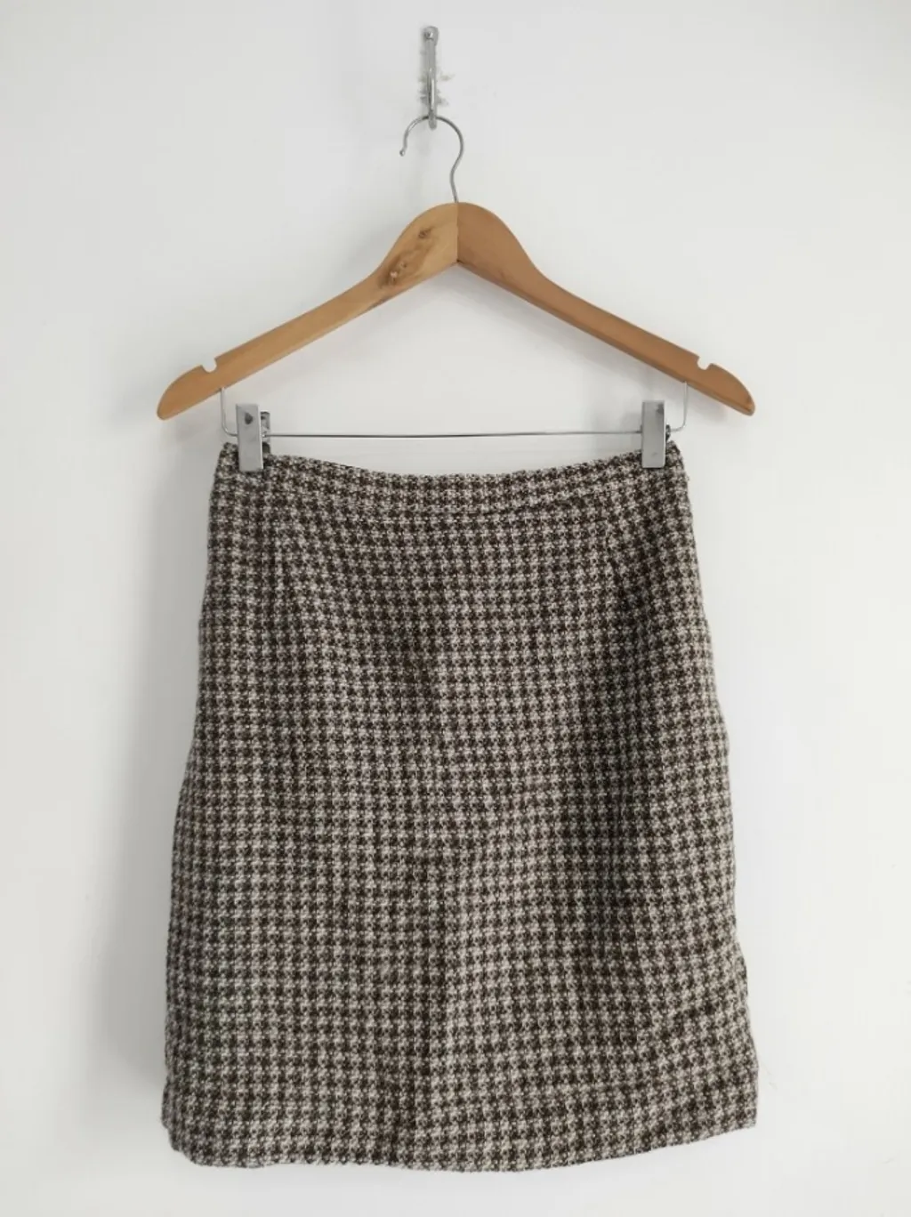 CONFIRA AS MEDIDAS ABAIXO: Possui cintura alta, fechamento com botão e zíper traseiro, pequena fenda nas costas, forro e estampa xadrez pied de poule. Usada, porém em excelente estado de conservação. Tamanho: P Cor: Marrom Tecido: Lã batida Marca: Colours Valdac Condição da peça: 10/10 Medidas: Cintura: 70cm Quadril: 94cm Comprimento: 49cm