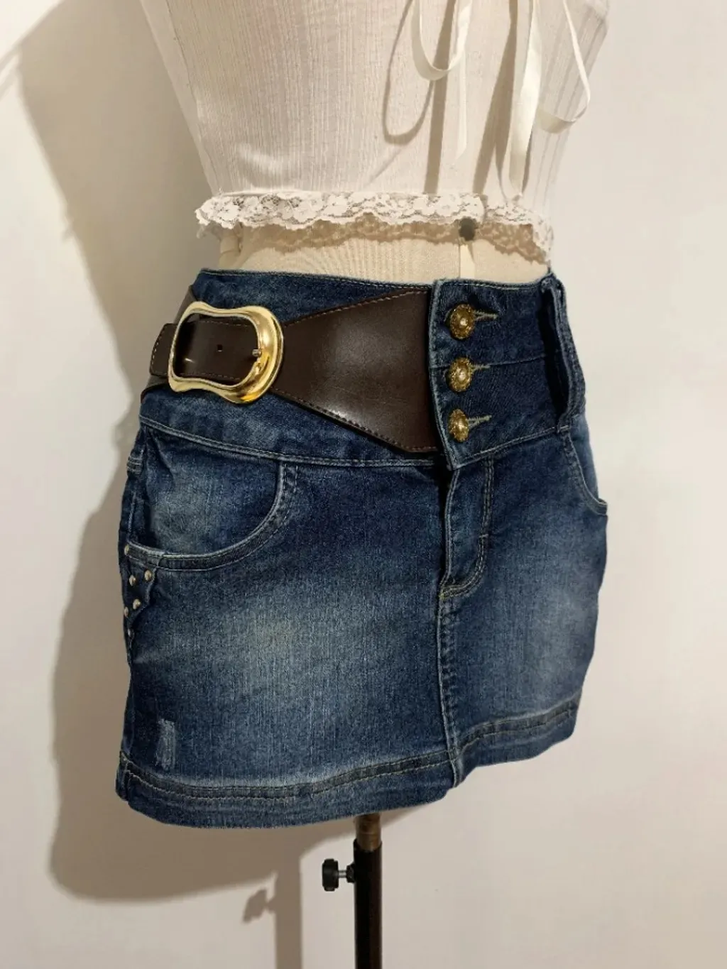 Tamanho: 38 Medidas aproximadas: ♡ cintura: 78cm até 83cm ♡ quadril: 90cm até 100cm ♡ comprimento: 30cm frente e 34cm atrás ⁃ fechamento com 3 botões e zíper ⁃ dois bolsinhos laterais e dois traseiros ⁃ o detalhe de cinto do lado tem dois furinhos, sendo possível deixar a saia mais soltinha ⁃ 65% algodão, 33% poliéster e 2% elastano