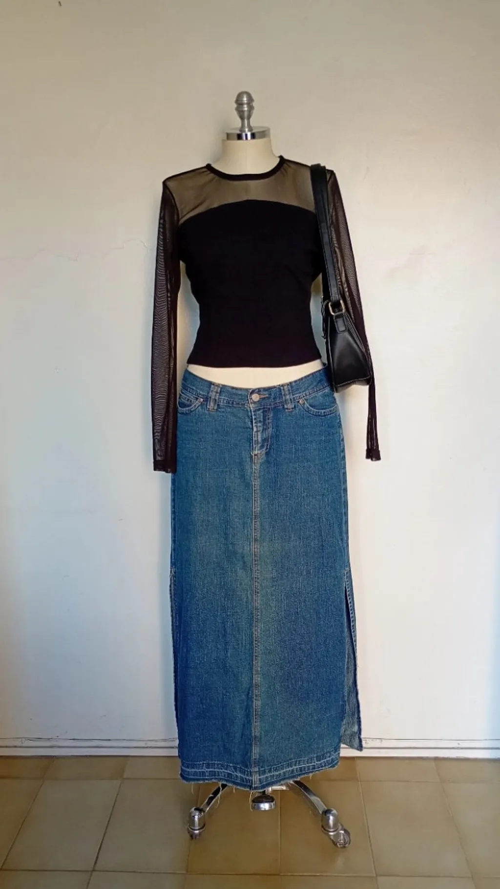 Saia Midi jeans retrô 2yk estilo vintage com fendas laterais tam