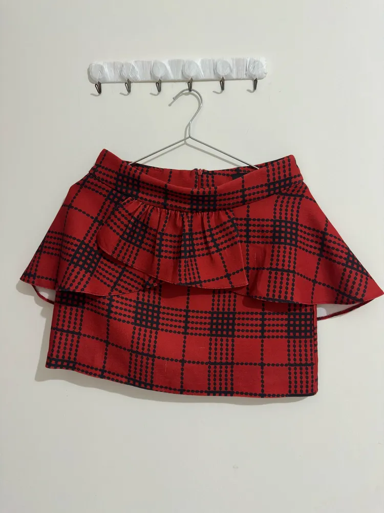 Saia xadrez com babados. Linda e super estilosa. Veste muito bem. Peça em ótima condição de conservação.