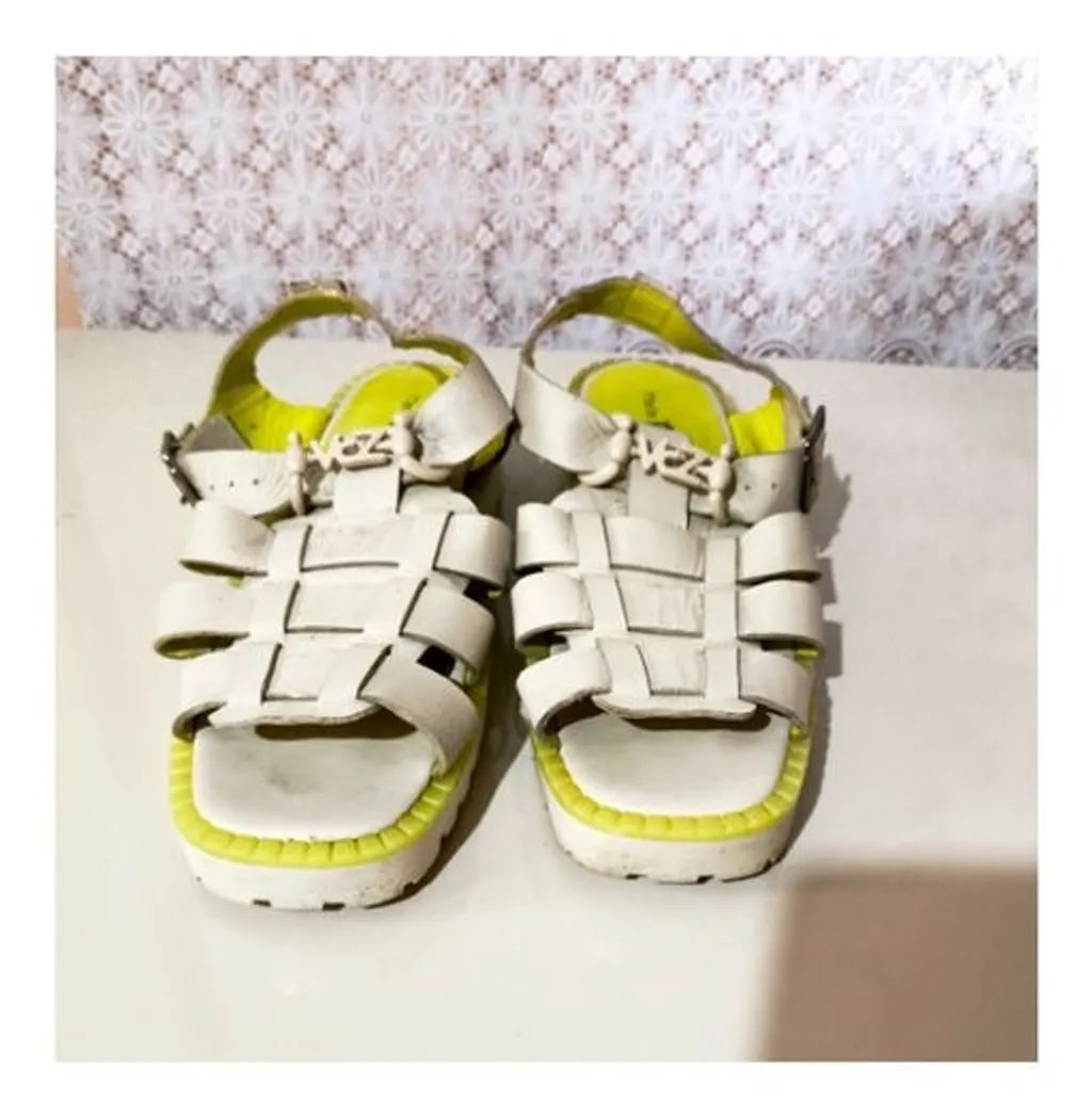 Sandália branca estilo flatform/tratorada da marca marta maria. usada, possui marcas de uso no solado, nas tiras e laterais (conforme fotos, analisar antes de comprar). estrutura firme e pronta para uso. sandália confortável e leve!