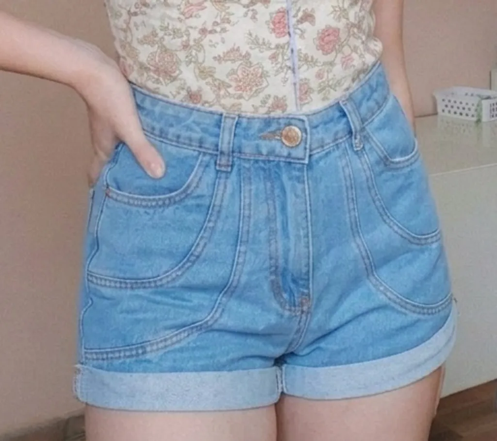 short jeans cintura alta, estilo vintage, na cor azul claro. possui bolsos frontais e traseiros, e barra dobrada. em perfeito estado de conservação tamanho 36 (está mais para 34/36 do que para 36/38) tags mom jeans 90s anos 90 cgc upcycling all star