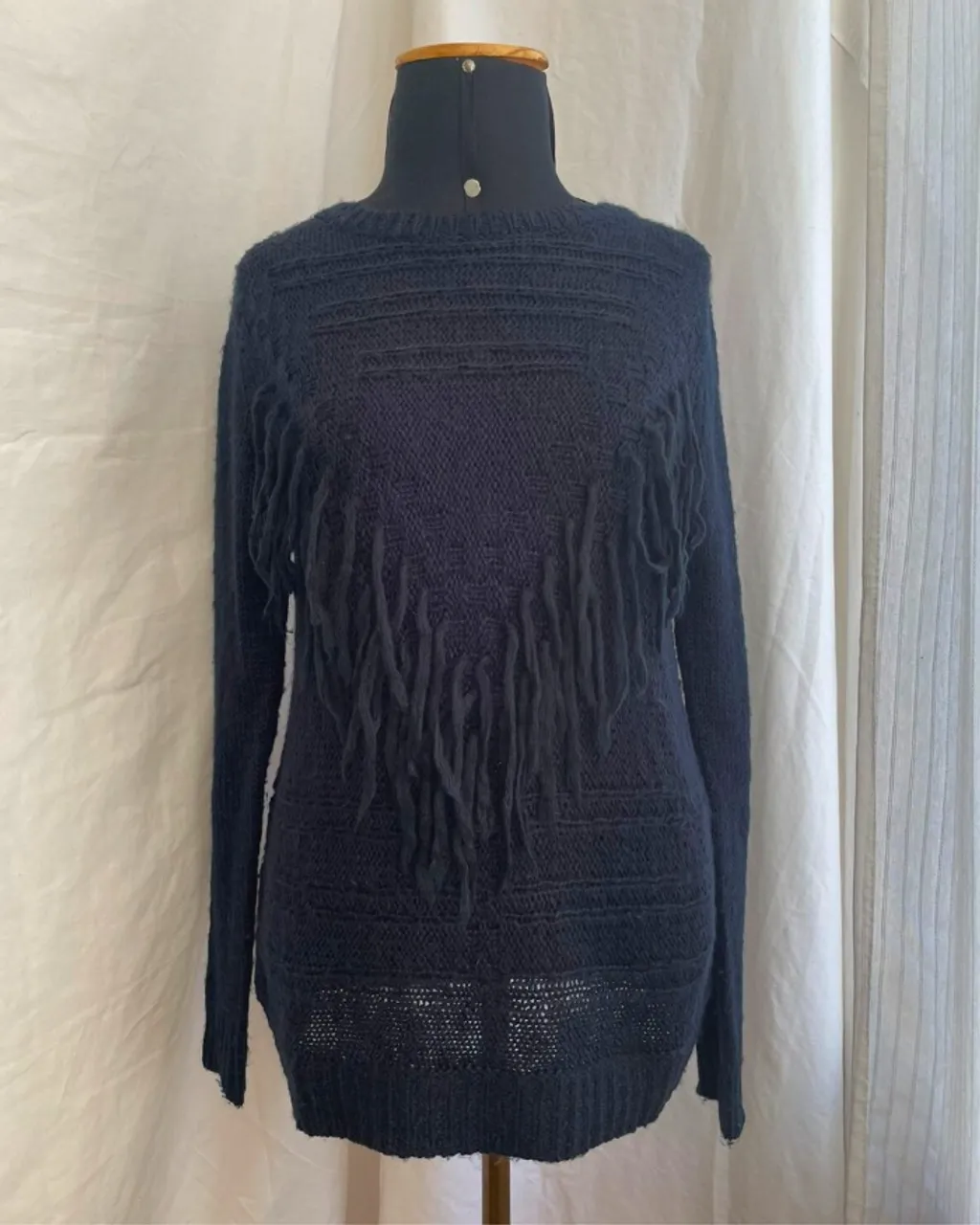 Feito em tricot macio, ele traz detalhes franjados frontais que adicionam um toque de personalidade à peça. Comprimento Peça 63cm / Comprimento Manga 62cm / Busto 94 cm / Cintura 74cm / Quadril 104cm. Tecido: 100% poliéster - Peça sem etiqueta de composição.