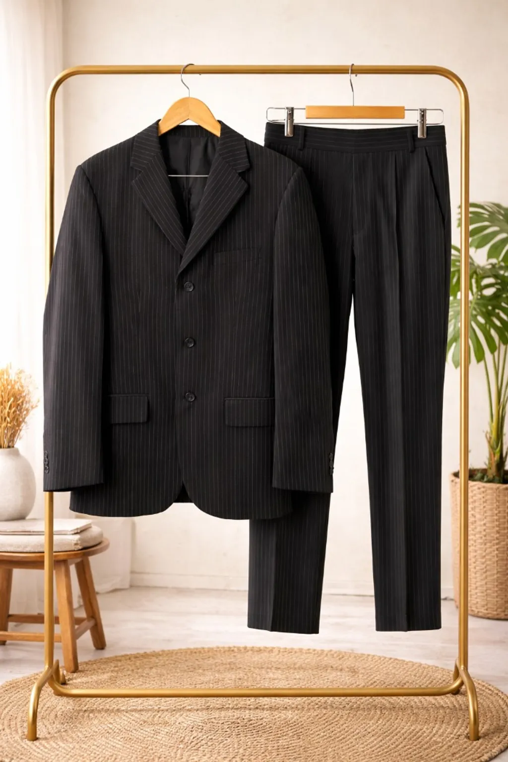 Traje elegante da Cia do Terno em risca de giz. Blazer tamanho 40 com 3 botões e calça tamanho 38. Perfeito para diversas ocasiões, combinando estilo e conforto. Possui pequeno desgaste na parte traseira da calça. Pode verificar na ultima foto. Suas principais medidas: - Comprmento blazer 46cm / calça 100cm - Cintura 76 - quadril 96 -Comp manga 63 - ombro a ombro 46cm