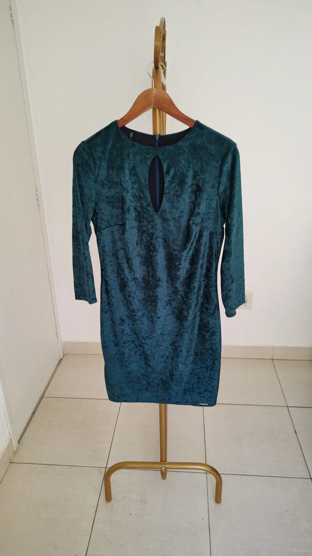 lindíssimo vestido de veludo na cor verde,com decote , peça em ótimo estado de conservação , tamanho 42 , marca lança perfume ,92 cm de busto ,91 cm de comprimento ,mangas 3/4, 30 cm de largura das mangas cor verde , marca lança perfume
