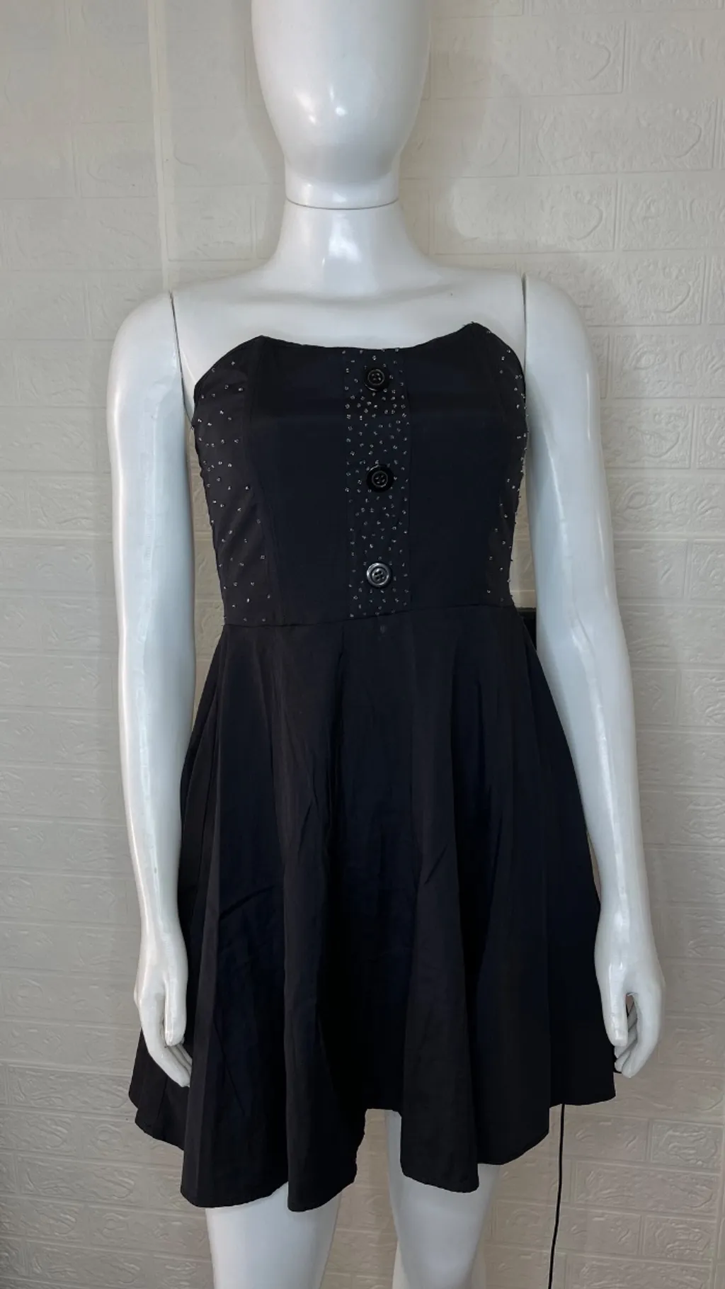 Vestido de festa preto tomara que caia com botões na frente e detalhes bordados. tamanho m, em ótimo estado.