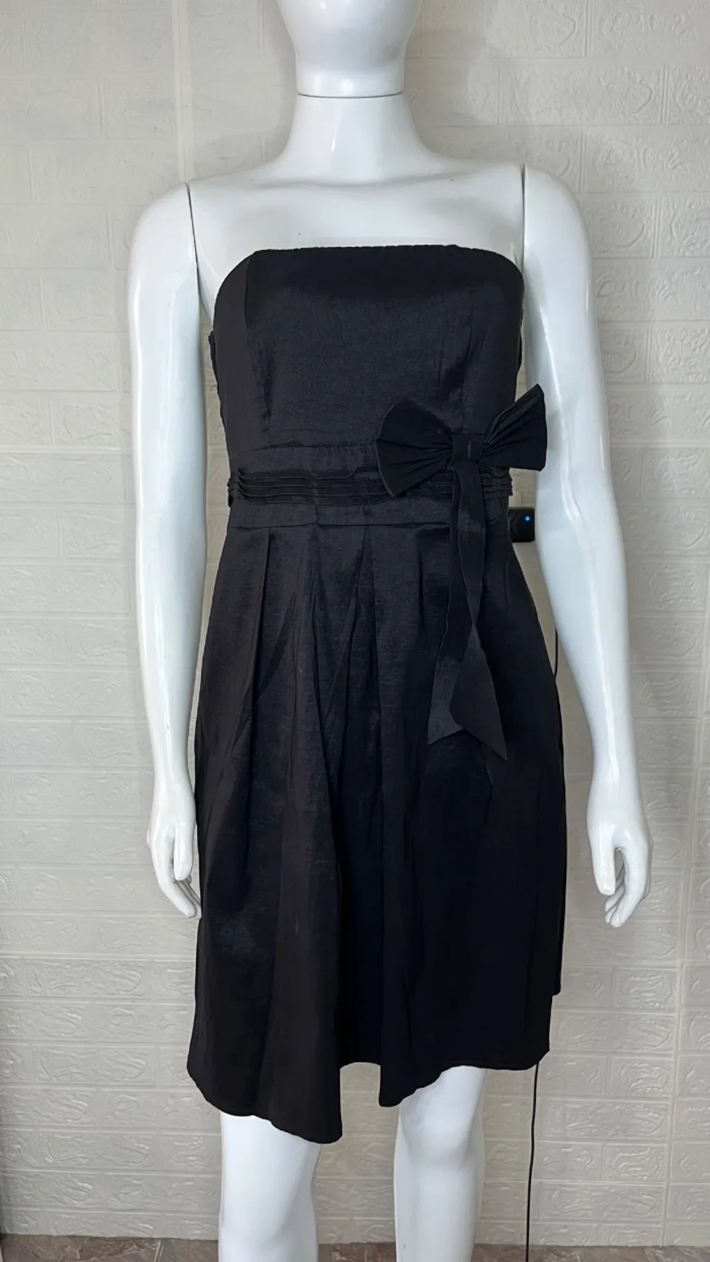 Vestido de festa preto tomara que caia com laço na frente