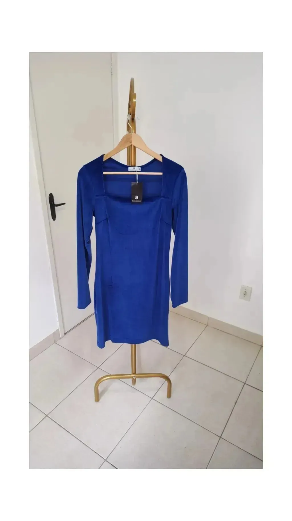 belíssimo vestido de veludo cor azul Royal,decote quadrado , Midi, tamanho 44, estado novo na etiqueta