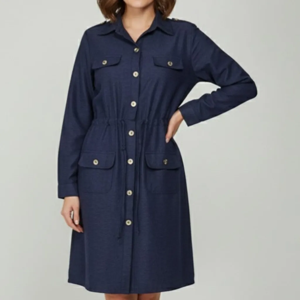 Vestido evangélico modesto, acinturado com cordão de ajuste na cintura, abertura de botões na frente, tamanho GG na etiqueta mas veste G, tecido encorpado mas não é jeans, da marca Yes Fashion. Busto: 102 cm Cintura: 96 cm Quadril: 112 cm Comprimento: 86 cm