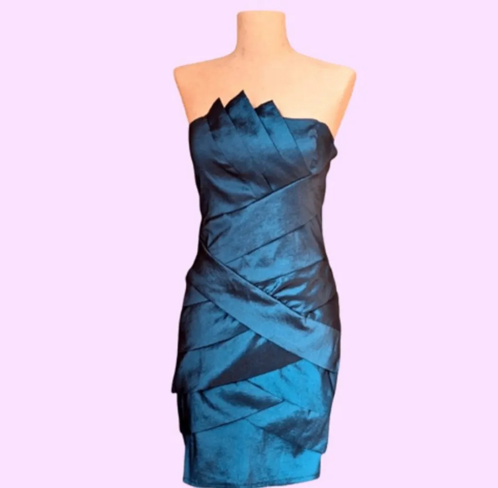 vestido curto acetinado de tafetá com drapeado geométrico no tom azul petróleo ocasião: festa, formatura, eventos, madrinha de casamento tamanho m, estica 38 a 48 cm de busto, 34 a 42 de cintura, 42 a 52 quadril, 72 comprimento o lenço pode ou não acompanhar a peça saia roupa feminina azul verde xale