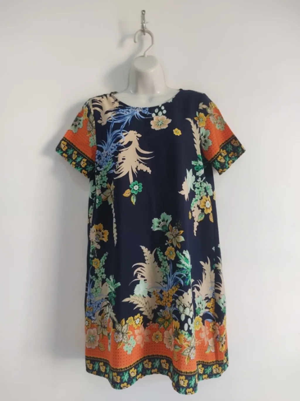 CONFIRA AS MEDIDAS ABAIXO: Possui gola redonda, manga curta, estampa floral, modelagem solta e tecido leve. Semi novo, excelente estado de conservação. Tamanho: P na etiqueta, mas veste M Tecido: Poliéster Marca: Shein Condição da peça: 10/10 Medidas: Busto: 100cm Cintura: 104cm Quadril: 115cm Comprimento: 89cm
