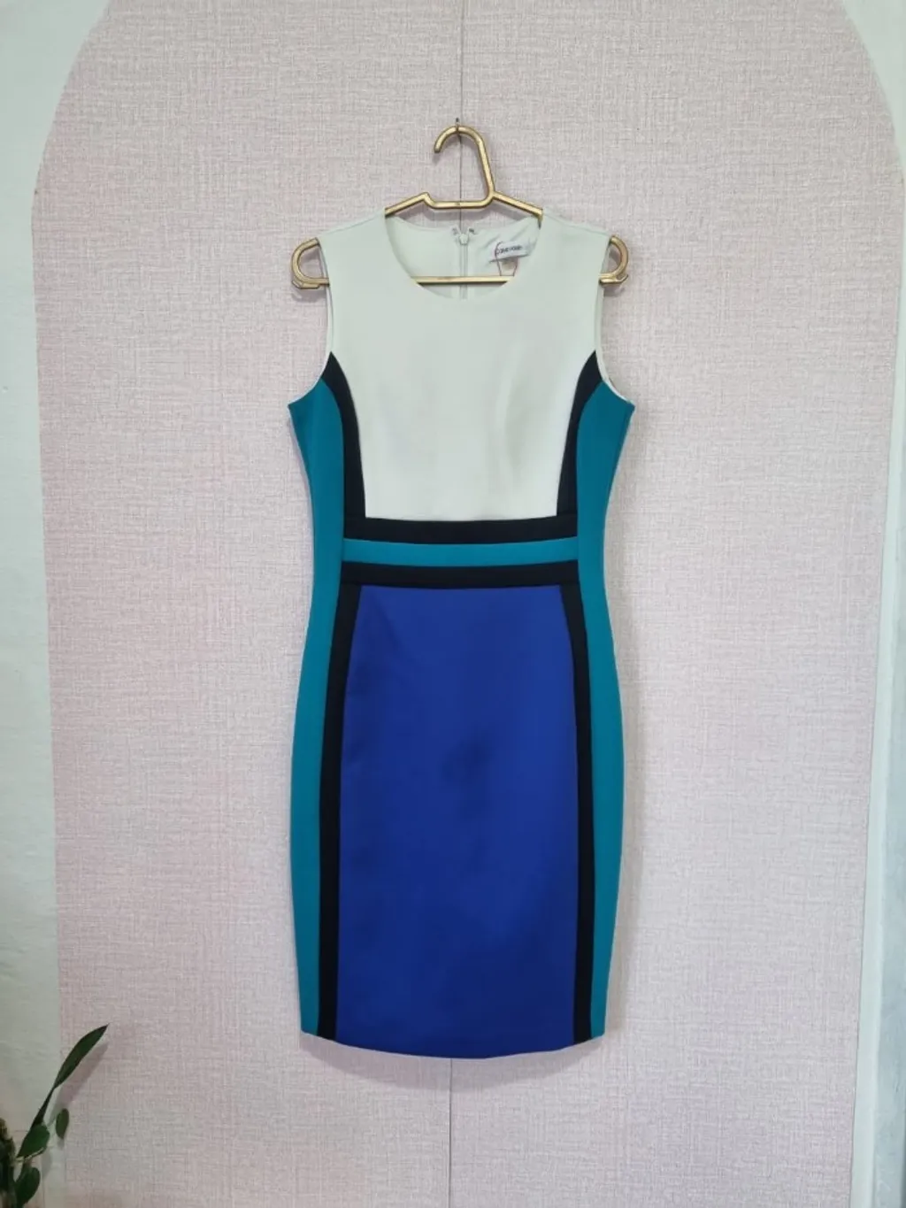 VESTIDO MODELO TUBINHO SEM MANGAS, CONFECCIONADO EM TECIDO BEM ENCORPADO E QUE NAO MARCA, AS ESTAMPAS GEOMETRICAS QUE DEIXA BEEM ACINTURADO, SERVE TAM P/M EQUIVALENTE AO 40, FECHO EM ZIPER INVISIVEL NA PARTE DE TRAS, DA MARCA CALVIN KLEIN