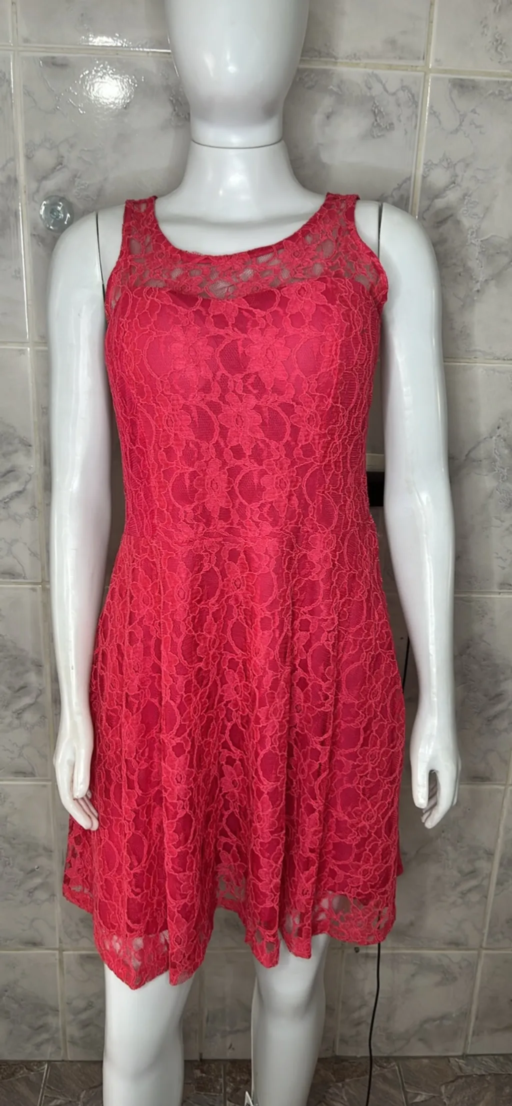 Vestido rodado rosa pink rendado