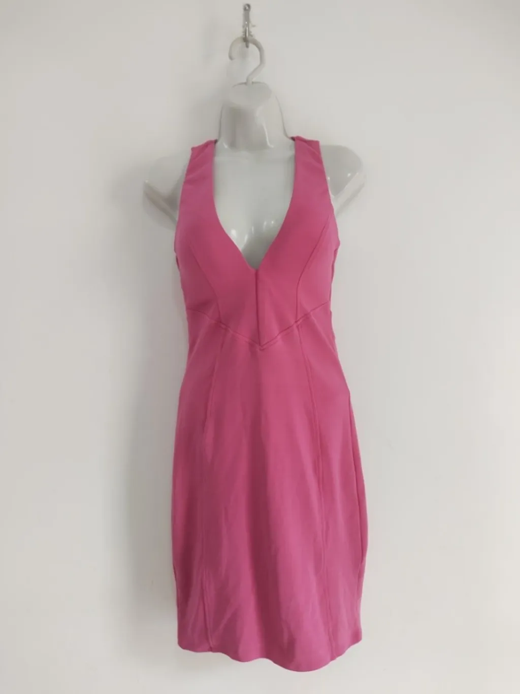 CONFIRA AS MEDIDAS ABAIXO: Possui bojo, decote v, fechamento com zíper traseiro e fechamento com dois botões na nuca. Tecido encorpado. Usado, porém em excelente estado de conservação. Tamanho: P Cor: Rosa Tecido: Poliamida e elastano Condição da peça: 10/10 Medidas: Busto: 80cm estica até 92cm Cintura: 62cm estica até 76cm Quadril: 82cm estica até 98cm Comprimento: 90cm