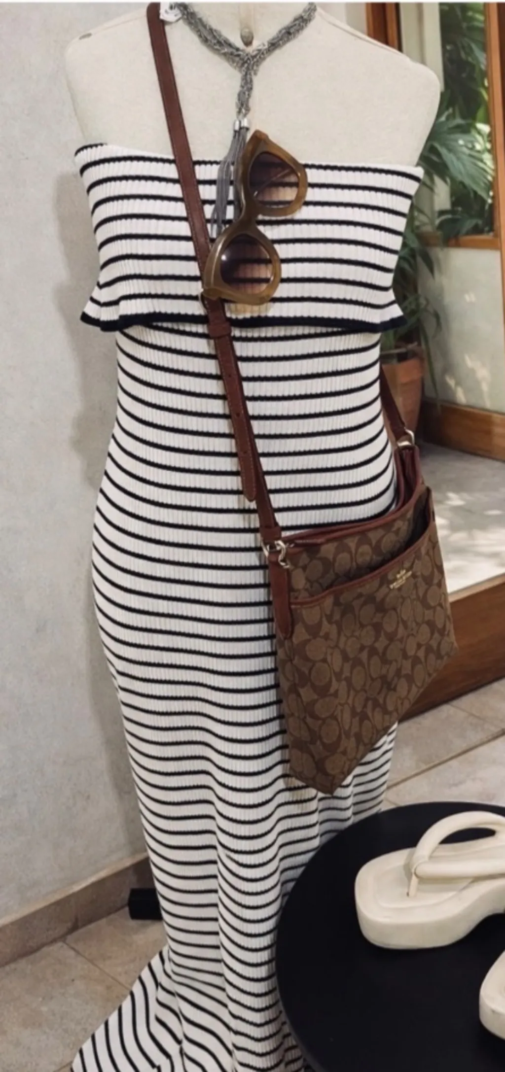 novo sem uso, tricô dele é bem grosso então ele não marca. eu meço 1,55 e teria que fazer a barra pq está arrastando no chão. busto: de 80cm sem esticar até 117cm esticando cintura: 89cm a 99cm quadril: até 130cm eu sugiro deixar ele sem esticar tanto, sendo dentro dessas medidas ou até mesmo um g.